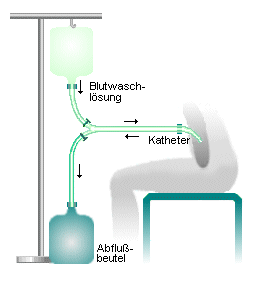 Über den Schlauch werden jeweils 1,5 bis 2,5 Liter einer Spüllösung in die Bauchhöhle geleitet. Nach etwa 4 bis 6 Stunden sind ausreichend Schlackenstoffe in die Flüssigkeit übergetreten. Die Spüllösung wird dann über den Katheter abgelassen und neue Lösung wird in den Bauch eingefüllt.